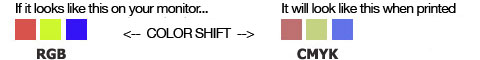 If you send us RGB files we will have to convert them to CMYK. This will cause a color shift. Color shifts are usually not visible in color photographs; however, rich and solid colors (like a background) can be affected by a color conversion from RGB to CMYK. Most of the time, color shifts are minor and may not be noticeable.